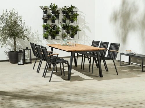 | Material | Ställning: Galvaniserat stålGalvanisering skyddar stål mot slitage och rost. Galvanisering är en process där man lägger ett slitstarkt och beskyddande lager zink på stål., Bordsskiva: Massiv teakTeak är ett underhållsfritt naturmaterial. Det slitstarka hårdträet innehåller mycket naturlig olja, vilket förhindrar vatten och fukt att tränga in i träet. Detta gör det mycket fukt- och temperaturtåligt. Med tiden utvecklar teak en naturlig, silvergrå patina., Ben: Galvaniserat stålGalvanisering skyddar stål mot slitage och rost. Galvanisering är en process där man lägger ett slitstarkt och beskyddande lager zink på stål. |