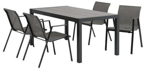 | Material | Ställning: Aluminium, Bordsskiva: DURAWOOD® kompositträ (polyetylen/hårdträfiber)DURAWOOD® kompositträ är ett underhållsfritt material med naturlig trälook. Det är tillverkat av en blandning av FSC hårdträfiber och plast, som ger ett slitstarkt och väderbeständigt material. DURAWOOD® är UV-skyddat vilket säkerställer en färgbeständig yta., Ben: Aluminium |
