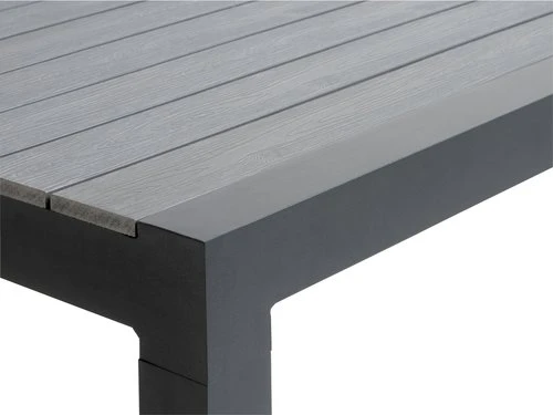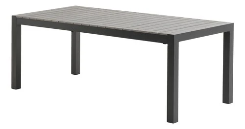 Aluminium och konstträ. Inkl. 1 klaff, som kan förvaras under bordsskivan. B95 x L205/275 x H76 cm