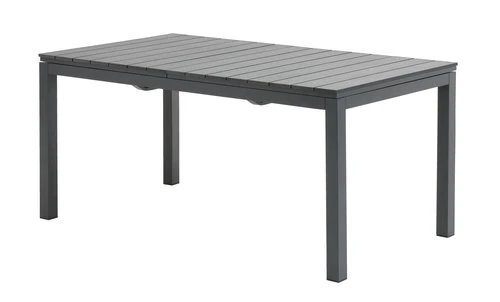 Aluminium och konstträ. Inkl. 2 klaffar, som kan förvaras under bordsskivan. B95 x L170/273 x H76 cm