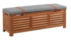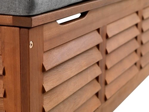 Oljat FSC® hårdträ. Med praktiskt hydrauliskt lock. Kan även användas som bänk. Frostsäker. Inkl. exklusiv dyna med slitstarkt, strukturvävt överdrag. B128 x H43 x D42 cm