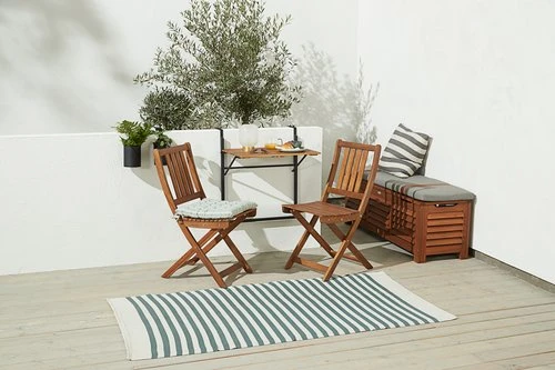 | Sittdyna | Tyg: 100% polypropylen, Stoppning: Skum/100% polyesterfiber, Skumdensitet: 20 kg/m³, Innertyg: 100% polypropylen, Tvätt: 30°C, Blekning: Använd ej blekmedel, Torktumling: Får inte torktumlas, Strykning: Kan inte strykas, Kemtvätt: Tål ej kemtvätt |