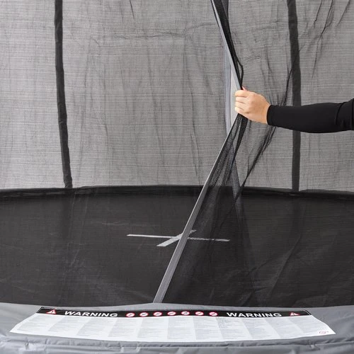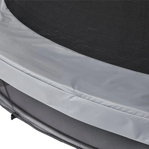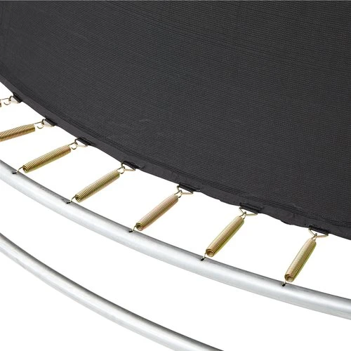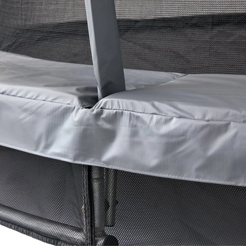 | Studsmatta funktioner | Böjt säkerhetsnät H184 cm, Överlappande, självstängande ingång, 1,7 cm tjock UV-beständig kantdyna med skumkärna och slitstarkt gummiöverdrag, Böjda stänger med skumstoppning och slitstarkt gummiöverdrag , 72 galvaniserade stålfjädrar, Galvaniserad stålram, Väderbeständig hoppmatta |