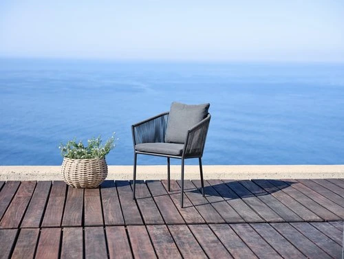 Aluminium och polyester. Inkl. exklusiva dynor med snabbtorkande, strukturvävt överdag. Överdraget har ett vattentätt skikt på insidan, som hindrar vatten från att komma in i dynan. Stapelbar.