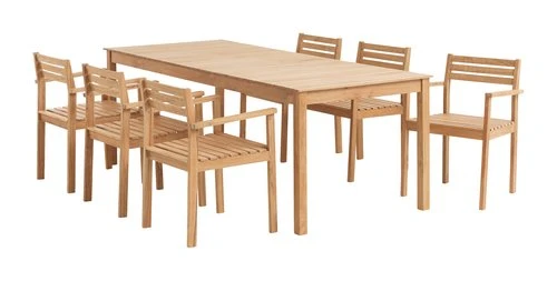 Bord: FSC® teak. B90 x L210 x H75 cm. Stol: FSC® teak.